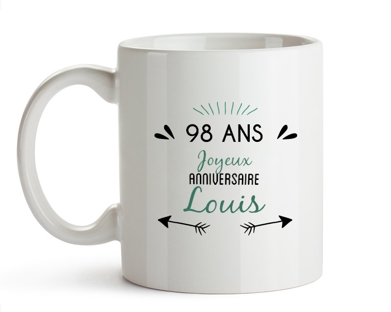 Pour célébrer les 98 ans d'un homme spécial, offrez-lui un mug personnalisé avec un message positif qui illuminera ses journées. Ce mug personnalisable est le cadeau idéal pour marquer cette occasion unique et lui rappeler combien il est aimé et apprécié. Imaginez son sourire en découvrant ce mug unique, conçu spécialement pour lui.