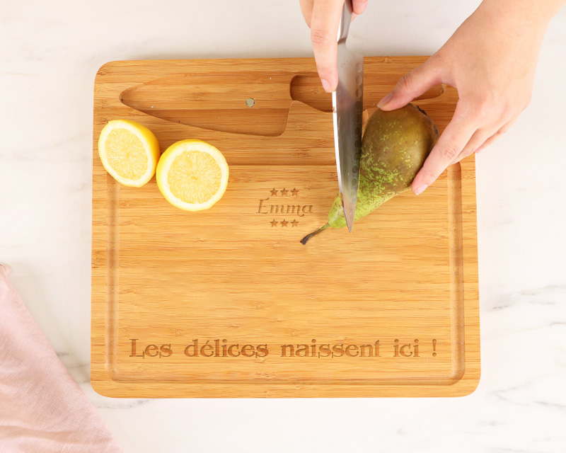 Pour célébrer les 65 ans d'un homme spécial, offrez-lui une planche à découper personnalisée pour homme de chez Oui Chef. Cette planche à découper en bois personnalisable est un cadeau à la fois pratique et original qui fera sensation lors des moments en cuisine.