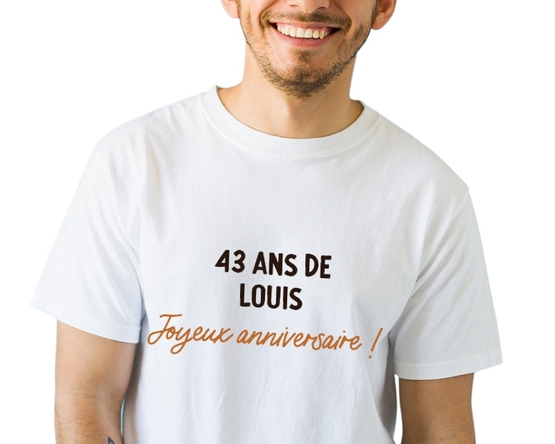 Imaginez offrir un t-shirt blanc homme personnalisé pour les 43 ans d'un homme spécial dans votre vie. Ce t-shirt blanc homme est le cadeau parfait pour célébrer cet anniversaire mémorable. Avec sa personnalisation unique, il deviendra un incontournable de la garde-robe de l'heureux destinataire.