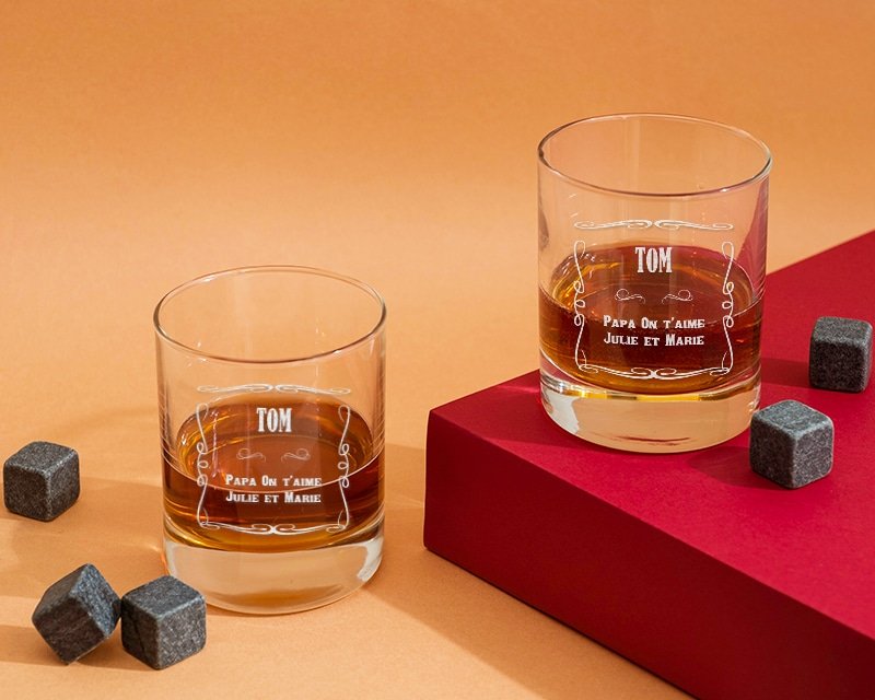 De plus, vous avez la possibilité d'ajouter des pierres à Whisky en option pour créer un coffret de dégustation complet. Chaque verre est minutieusement gravé par laser par nos artisans basés à Laval en Mayenne, garantissant un travail soigné et personnalisé.