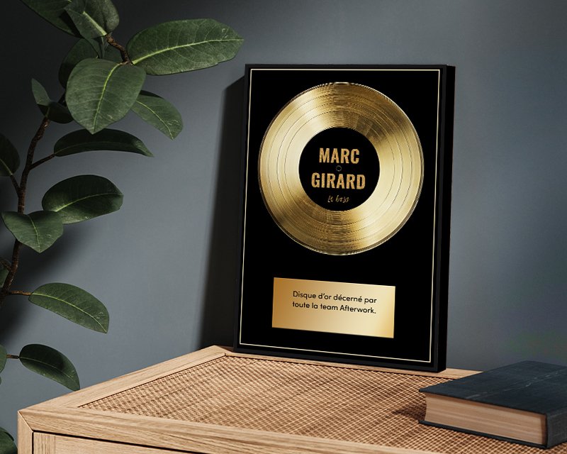 De plus, ce cadeau original et personnel ajoutera une touche d'éclat à n'importe quel espace, en tant que magnifique objet de décoration. Offrir ce disque d'or personnalisé sera un geste qui saura faire briller les yeux de la personne qui le recevra.