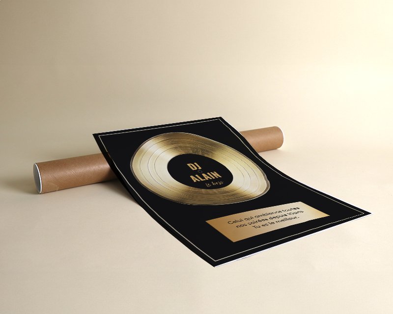 Imaginez son visage s'illuminer en découvrant ce disque d'or personnalisé, où son nom et un message spécial seront immortalisés. Que ce soit pour un anniversaire surprise, une fête en famille ou tout simplement pour lui montrer votre amour, cette affiche disque d'or fera sensation à coup sûr.