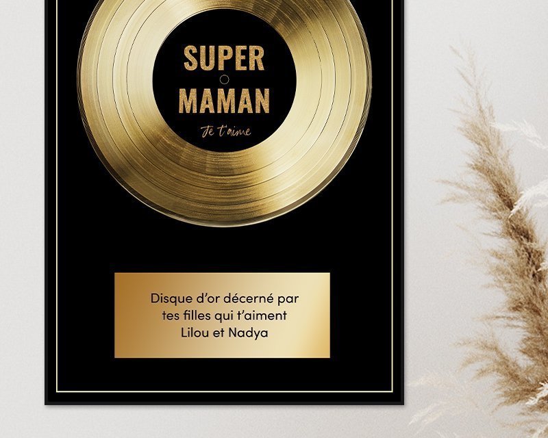 Laissez briller son anniversaire avec un cadeau personnalisé unique : le disque d'or personnalisé. À l'approche des 47 ans de cette femme extraordinaire dans votre vie, offrir une affiche disque d'or est une idée originale et émouvante qui restera gravée dans les mémoires. Imaginez sa surprise et sa joie en découvrant un disque d'or personnalisé, mettant en lumière des moments marquants de sa vie ou des messages spécialement choisis pour elle. Que ce soit pour un anniversaire, une fête spéciale ou simplement pour lui montrer à quel point elle compte pour vous, ce cadeau unique saura toucher en plein cœur.
