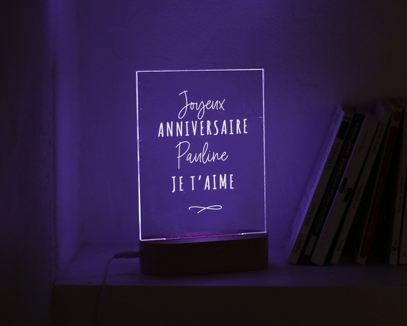 Pour célébrer les 39 ans d'une femme spéciale dans votre vie, pourquoi ne pas lui offrir une lampe 3D plexi personnalisée avec son prénom et un message unique ? Cette lampe 3D personnalisable est un cadeau original et touchant qui apportera une touche de lumière à son quotidien.