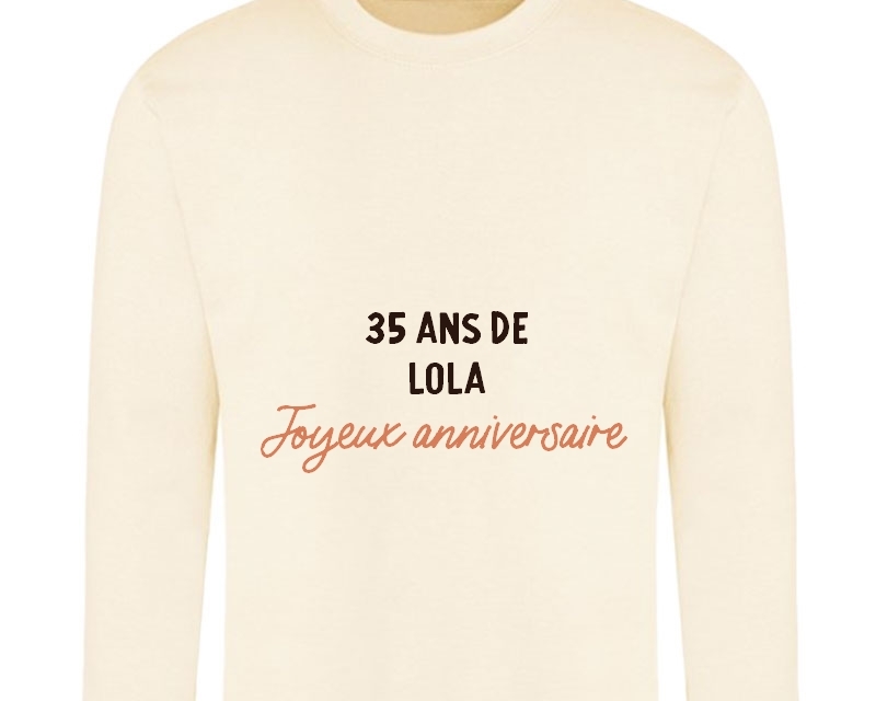 Que ce soit pour un anniversaire, la fête des mères ou simplement pour lui montrer votre affection, ce sweat personnalisé saura toucher le cœur de cette femme de 35 ans. Elle pourra le porter fièrement au quotidien, rappelant ainsi le geste attentionné et attentionné de l'être cher qui le lui a offert.