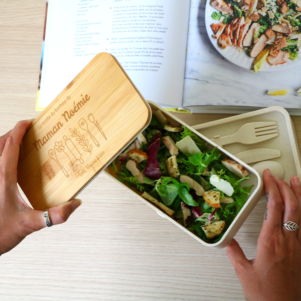 La collection Recette du Bonheur transforme chaque objet du quotidien en message d’amour. Cette boîte à bento personnalisée est bien plus qu’un accessoire : c’est un concentré de tendresse et de reconnaissance, pensé pour rappeler à chaque bouchée que la maman est l’ingrédient central du bonheur familial.