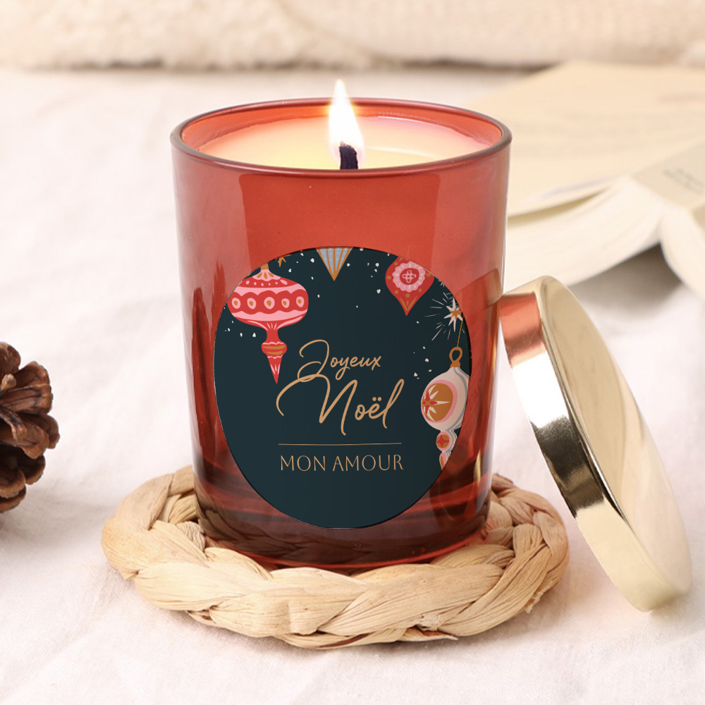 Composez un message court et marquant sur l’étiquette rouge au style chaleureux et festif. Que ce soit un prénom, un mot doux ou un petit inside joke, cette bougie de Noël personnalisée s’adapte à votre intention et s’intègre parfaitement à une déco hivernale.