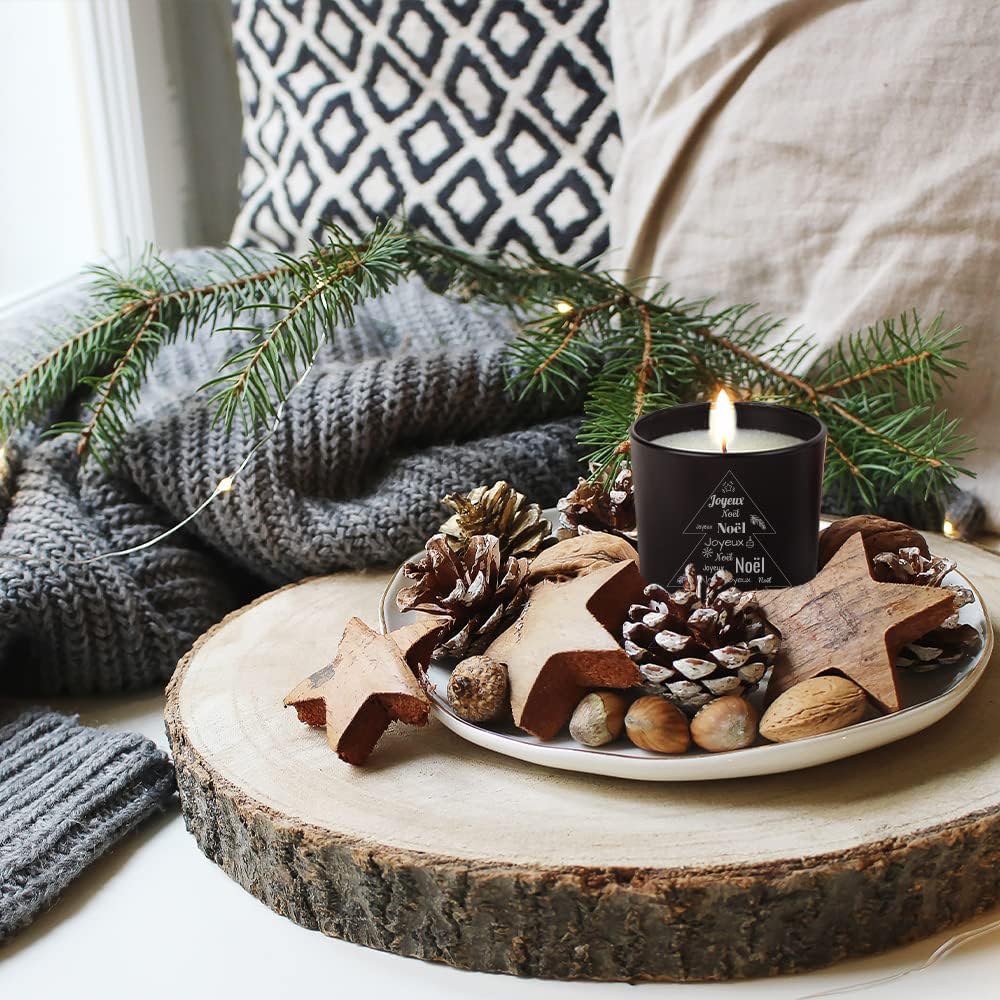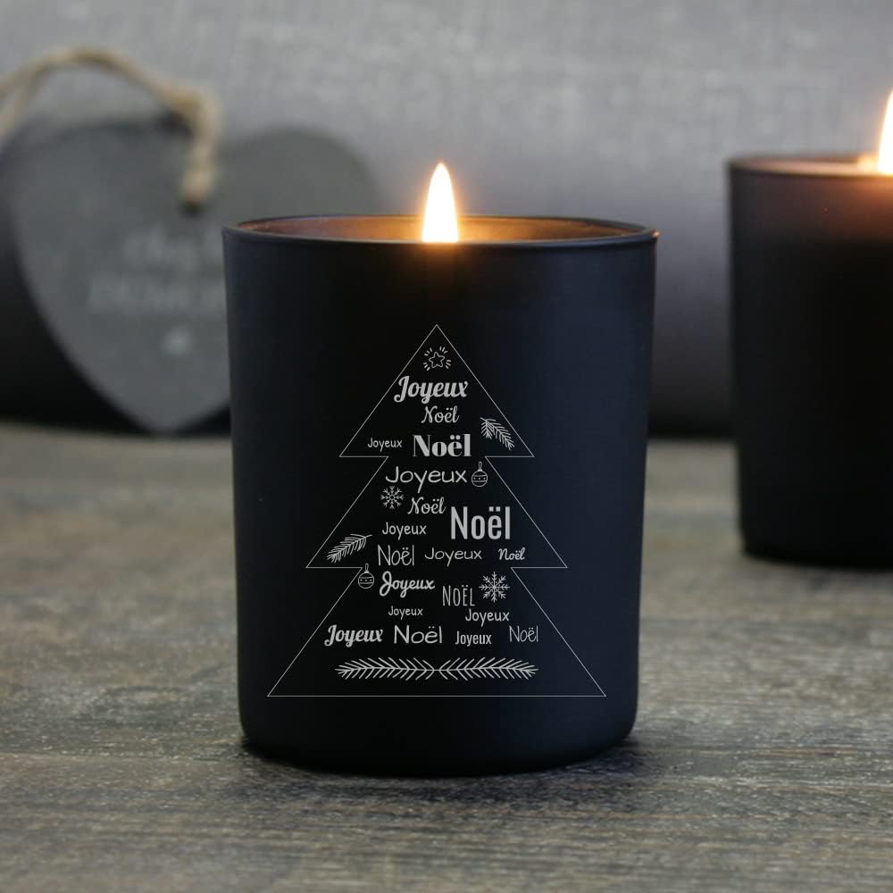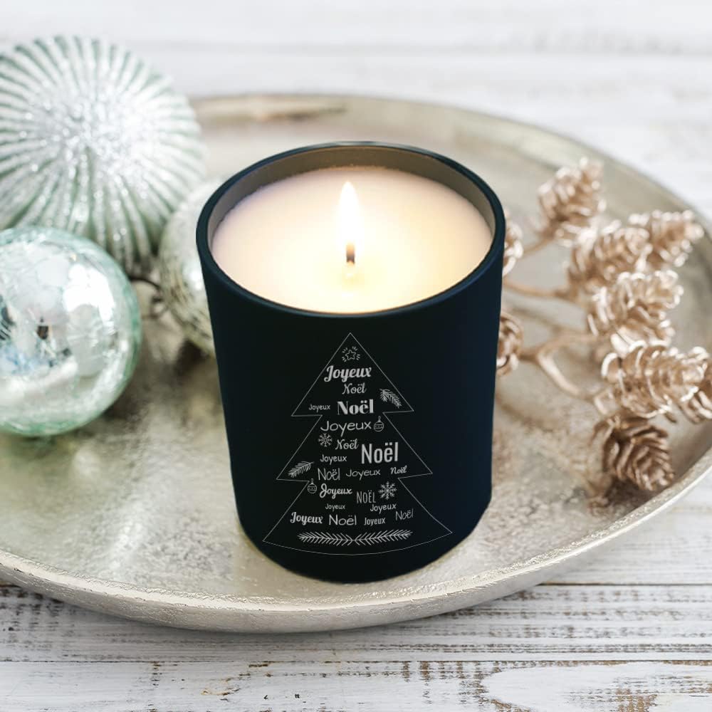 Illuminez vos fêtes de fin d’année avec cette magnifique bougie “Joyeux Noël” au design élégant et festif. Gravée d’un motif sapin stylisé formé de typographies variées, elle apportera instantanément une touche chaleureuse et raffinée à votre décoration de Noël.