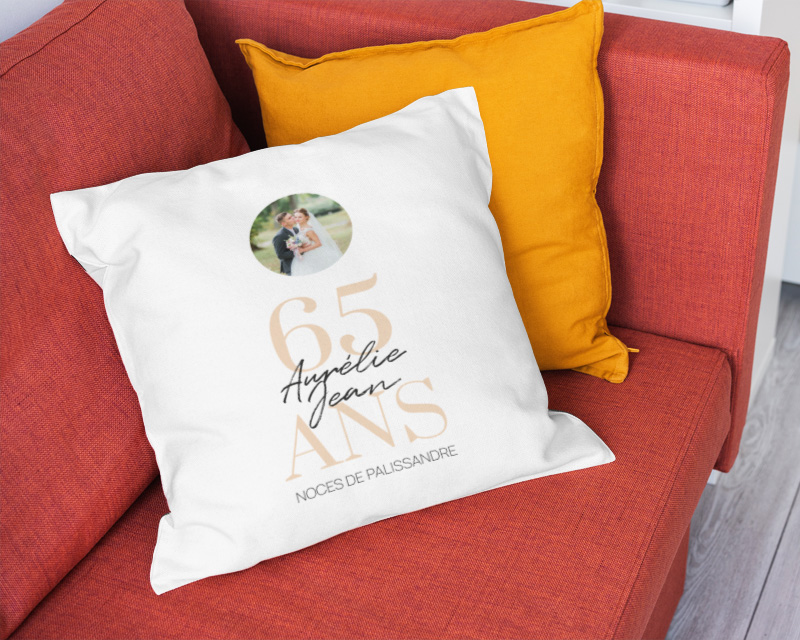 Pour commémorer des noces de Palissandre pour les 65 ans de mariage, quoi de mieux que d'offrir à votre partenaire un coussin personnalisé ? Ce coussin, confectionné avec des matériaux de qualité supérieure, procure une sensation de douceur et un confort idéal pour se reposer ou se lover. Avec ses dimensions standard de 40 x 40 cm, il s'adapte parfaitement à tous types de canapés, fauteuils ou lits.
