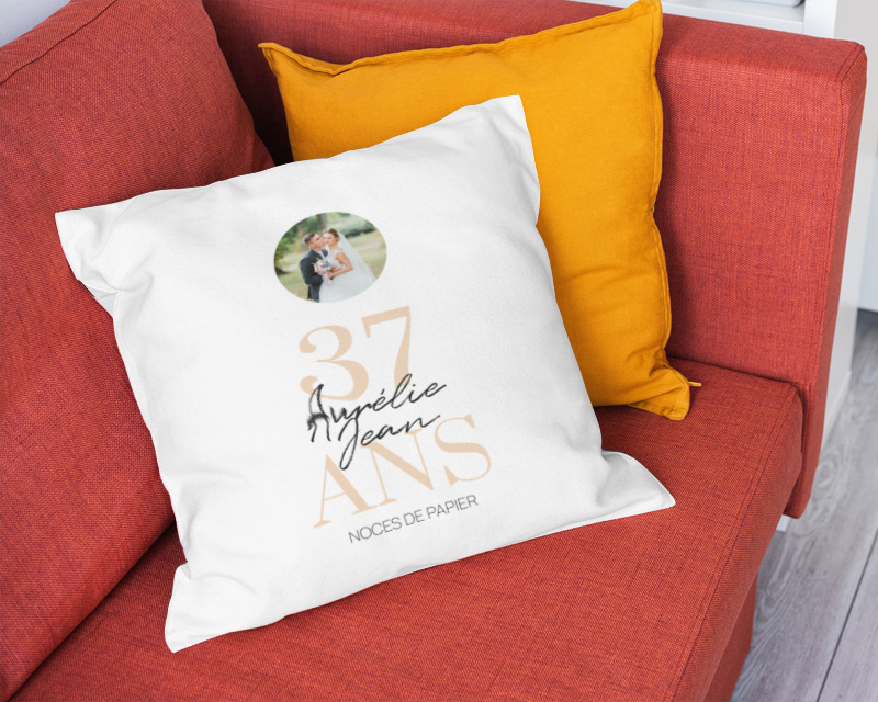 Pour commémorer des noces de Papier pour les 37 ans de mariage, quoi de mieux que d'offrir à votre partenaire un coussin personnalisé ? Ce coussin, confectionné avec des matériaux de qualité supérieure, procure une sensation de douceur et un confort idéal pour se reposer ou se lover. Avec ses dimensions standard de 40 x 40 cm, il s'adapte parfaitement à tous types de canapés, fauteuils ou lits.
