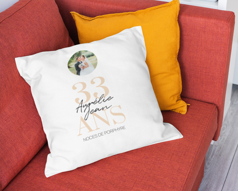 Coussin personnalisé anniversaire de mariage - Noces de Porphyre