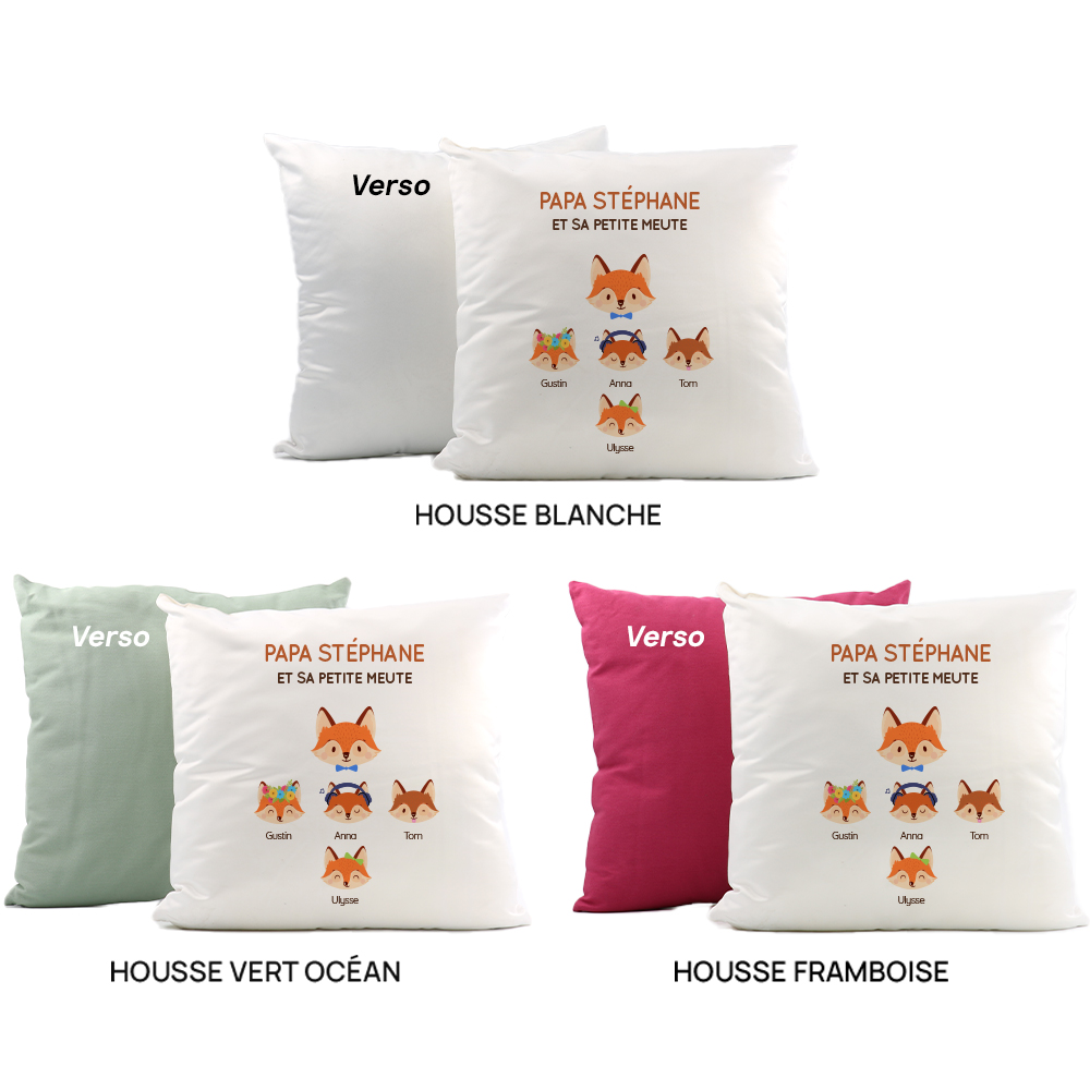 Créez un coin de douceur dans le salon ou la chambre avec ce coussin personnalisé famille. Chaque renard symbolise un enfant, et grâce aux nombreuses options de personnalisation, vous pouvez choisir le renard qui correspond à chacun. Papa pourra se détendre avec sa petite meute tout en ayant un souvenir unique et réconfortant.