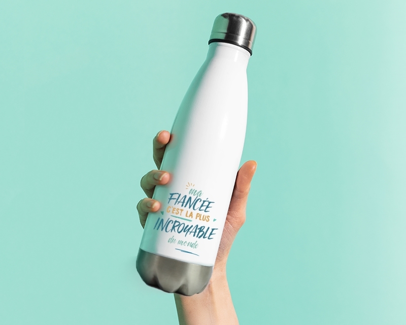 Offrez cette gourde personnalisée à votre fiancée et montrez-lui à quel point elle est spéciale. Un cadeau pratique, écologique et plein d'amour qui saura la combler.