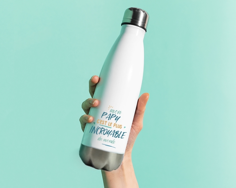 Offrez cette gourde personnalisée "Papy le plus..." à votre grand-père et faites-lui plaisir avec un cadeau original et abordable qui lui sera utile au quotidien.