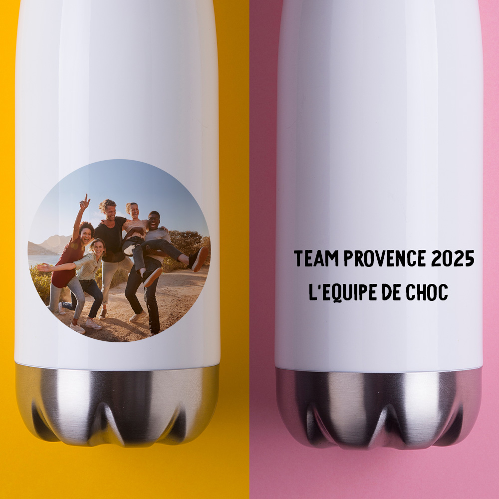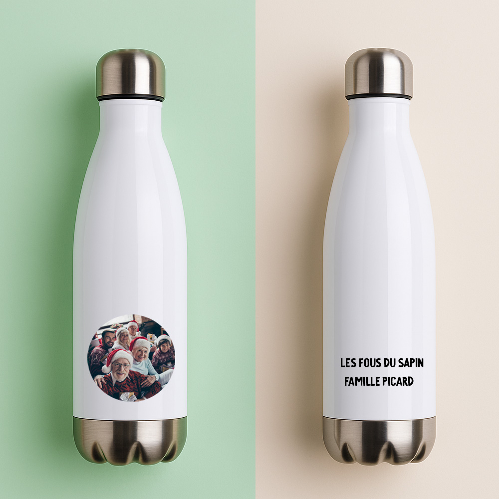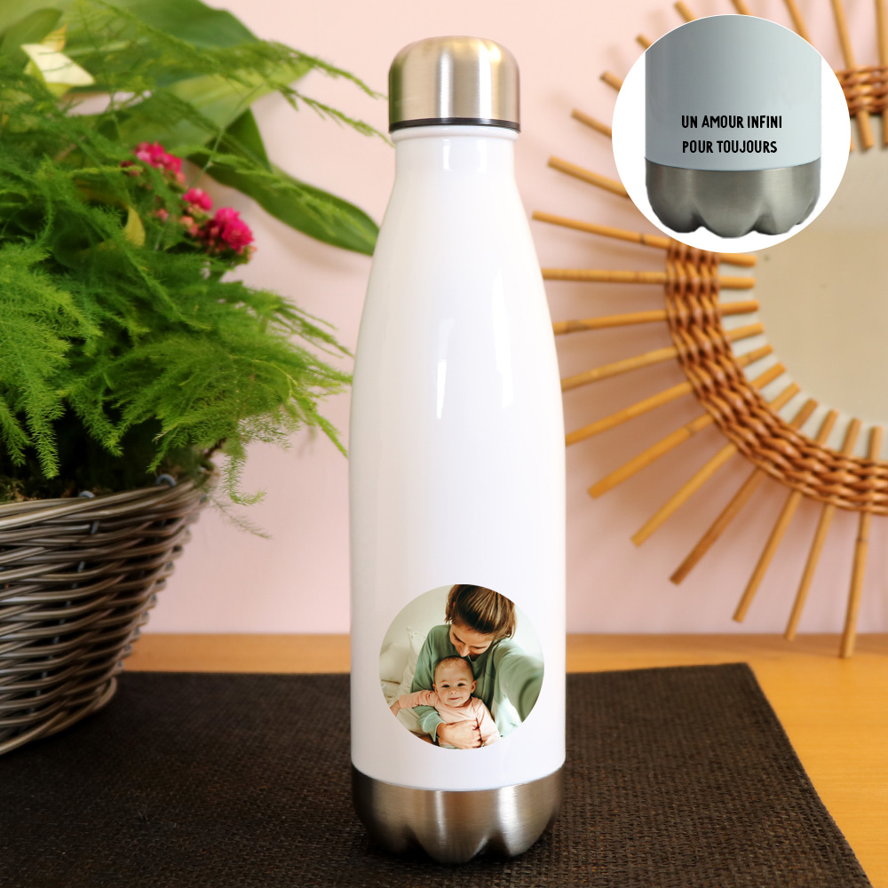 Une gourde personnalisée avec une photo, qui suit chaque moment de vie, du bureau aux escapades du week-end. Ajoutez votre photo et un petit mot pour créer un souvenir utile au quotidien. Nous vous recommandons de télécharger une photo en haute résolution pour garantir la meilleure qualité d'impression de votre cadeau.