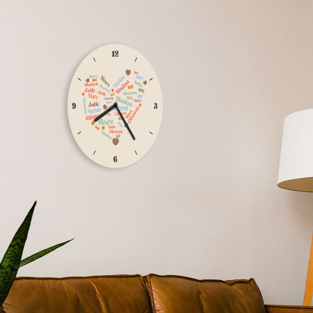 Le temps passe, mais l’amour familial reste intact. Cette horloge personnalisée en forme de cœur est une magnifique façon de célébrer les liens familiaux et de garder ses proches toujours près de soi.