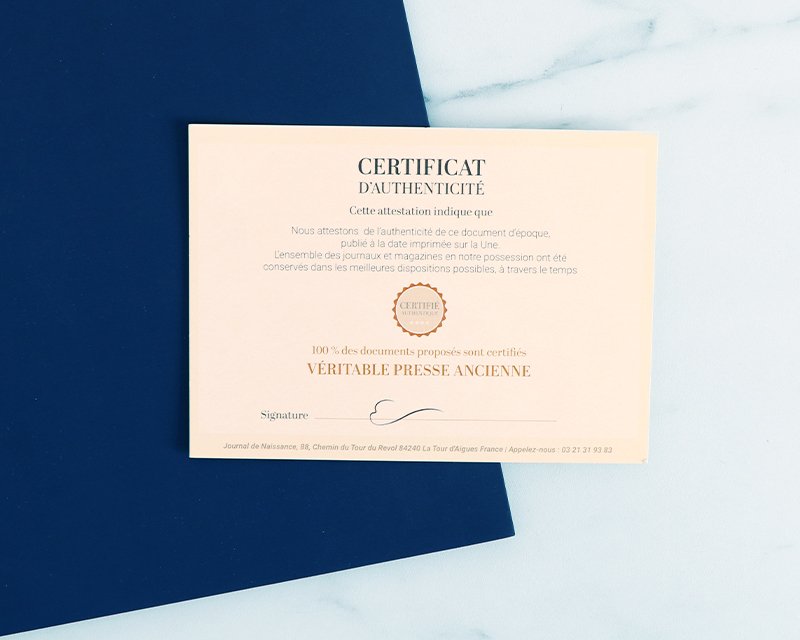 Note : Nous envoyons en priorité un journal national correspondant à la date choisie. Si nous n'en possédons plus en stock, vous recevez un journal régional.