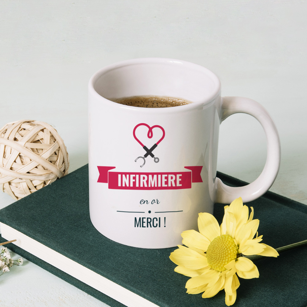 Parce qu’elles prennent soin des autres avec passion et bienveillance, ce mug “Infirmière en or” est le cadeau parfait pour remercier une infirmière exceptionnelle.