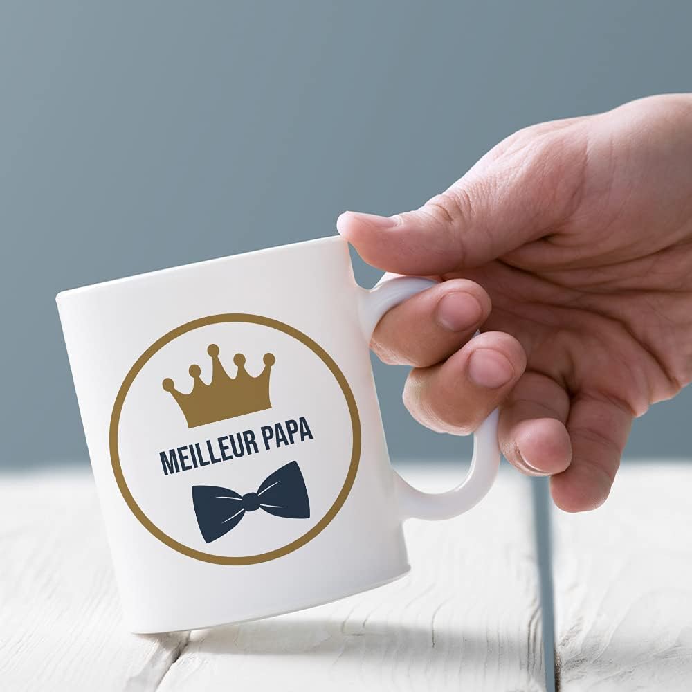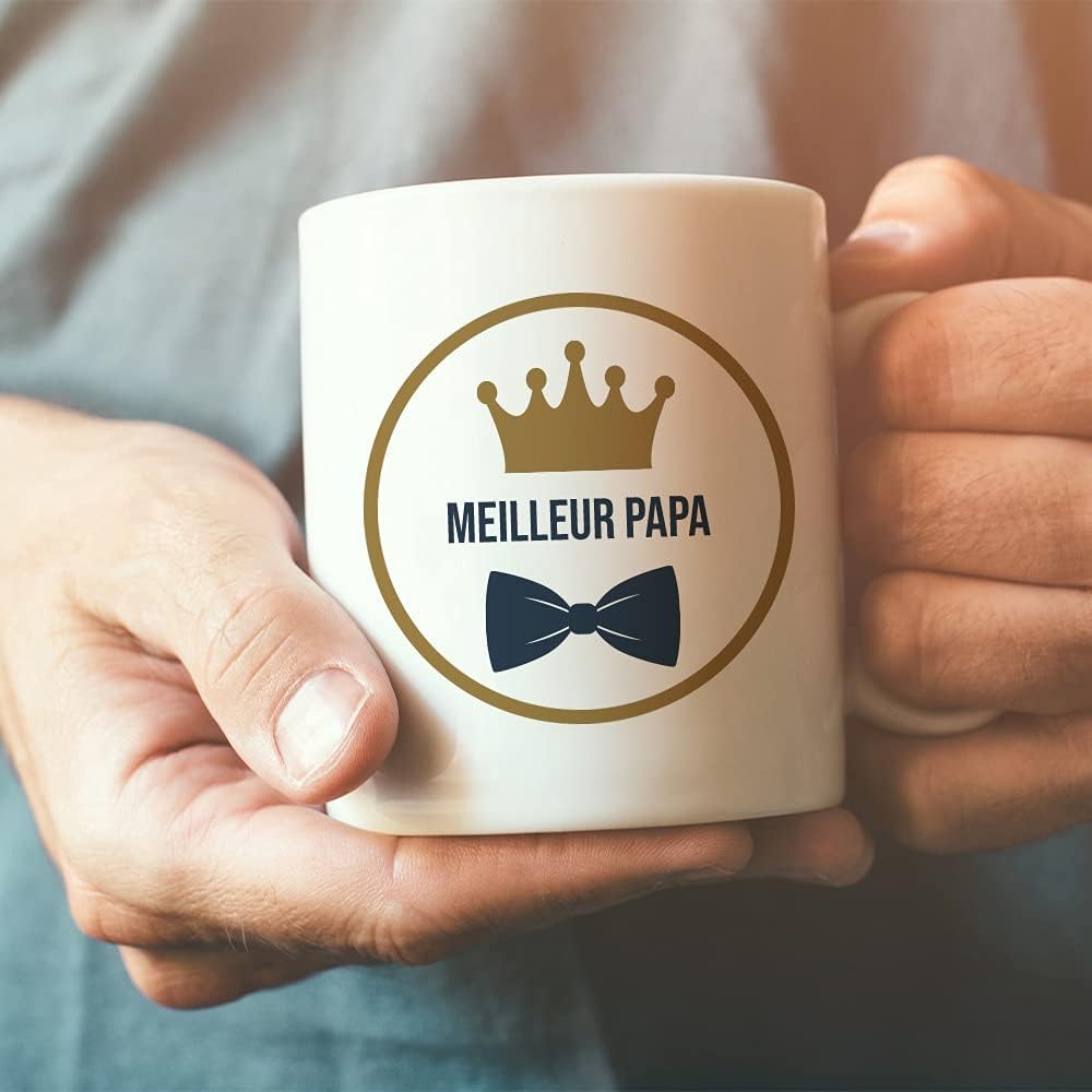 Célébrez le meilleur papa du monde avec ce mug élégant et plein de fierté ! Son design sobre, rehaussé d’une couronne dorée et d’un nœud papillon, fait de chaque café un instant royal.