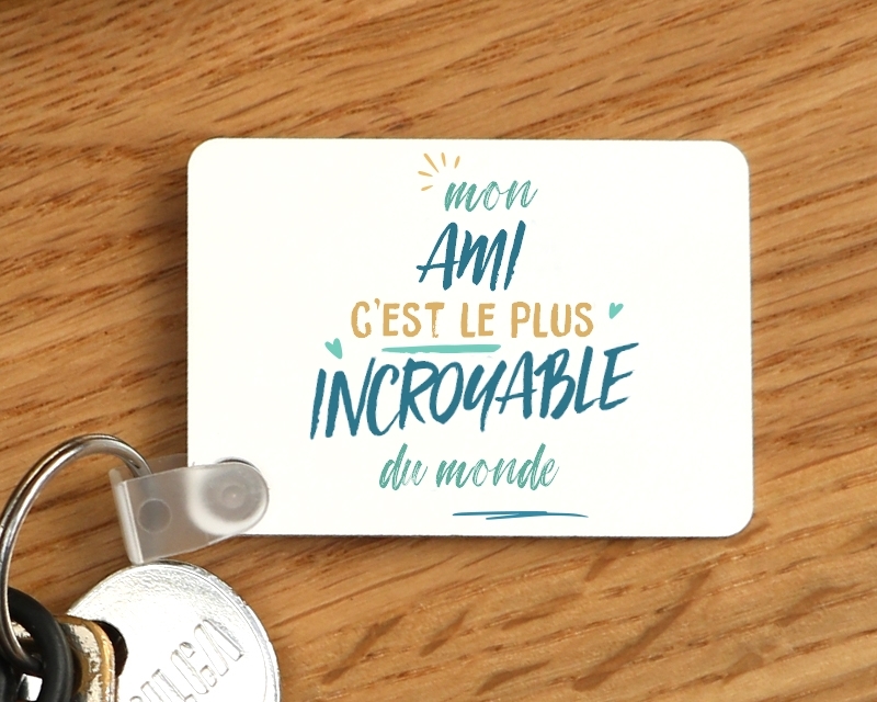 Mais ce qui rend ce porte-clé vraiment spécial, c'est la possibilité de le personnaliser avec le message "Ami le plus...". Que vous souhaitiez exprimer votre gratitude, votre amour ou simplement faire sourire un ami cher, ce porte-clé sera le cadeau idéal pour toutes les occasions.
