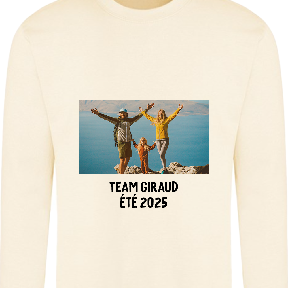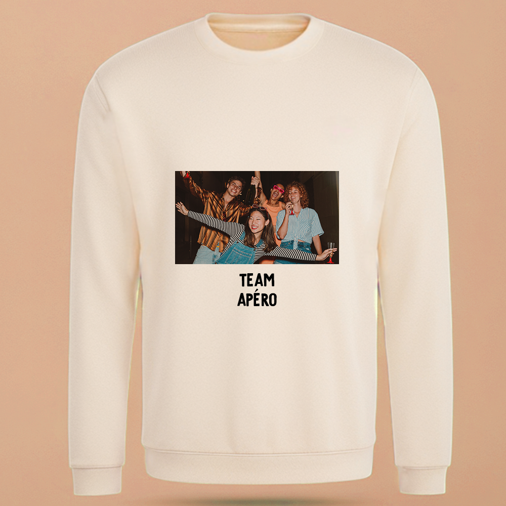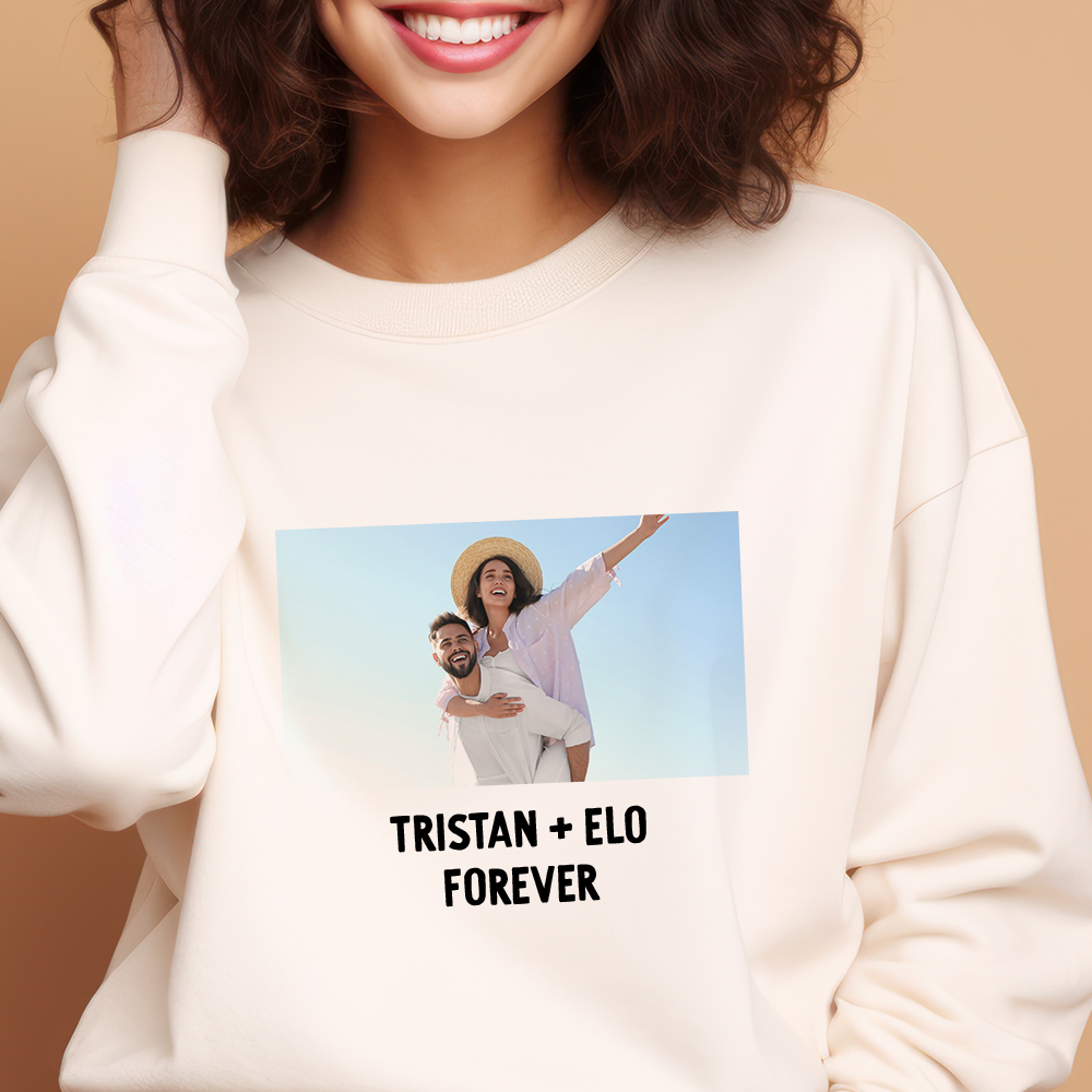 Choisissez une image forte en émotion, ajoutez un mot doux, un surnom ou une date clé. L’ensemble transforme un sweat col rond personnalisable en pièce unique qui parle de votre histoire et que l’on a envie de porter, de montrer et de garder.