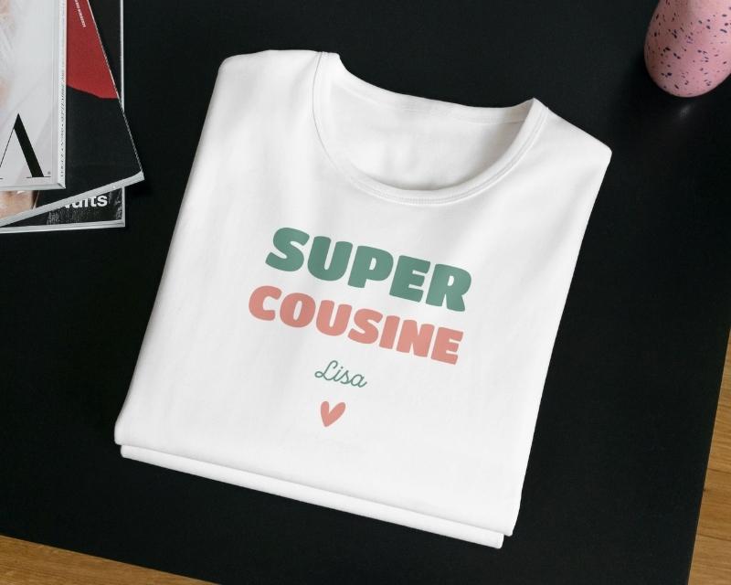 Faites plaisir à votre cousine avec un cadeau personnalisé unique : notre nouveau t-shirt cousine personnalisé ! Ce t-shirt blanc en coton 100% de haute qualité (180g/m²) est le choix parfait pour exprimer tout votre amour à votre cousine préférée. Doté d'un col rond et d'un tissu résistant, il offre à la fois confort et durabilité, garantissant un port agréable et une longue durée de vie, lavage après lavage.
