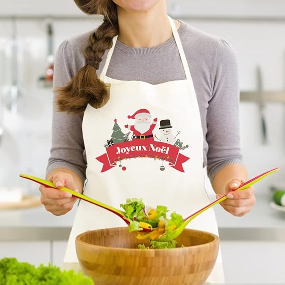 Faites entrer la magie de Noël dans votre cuisine avec ce superbe tablier “Joyeux Noël” ! Orné d’un adorable Père Noël et de son bonhomme de neige, il apportera une touche de bonne humeur et de convivialité à toutes vos préparations de fêtes.