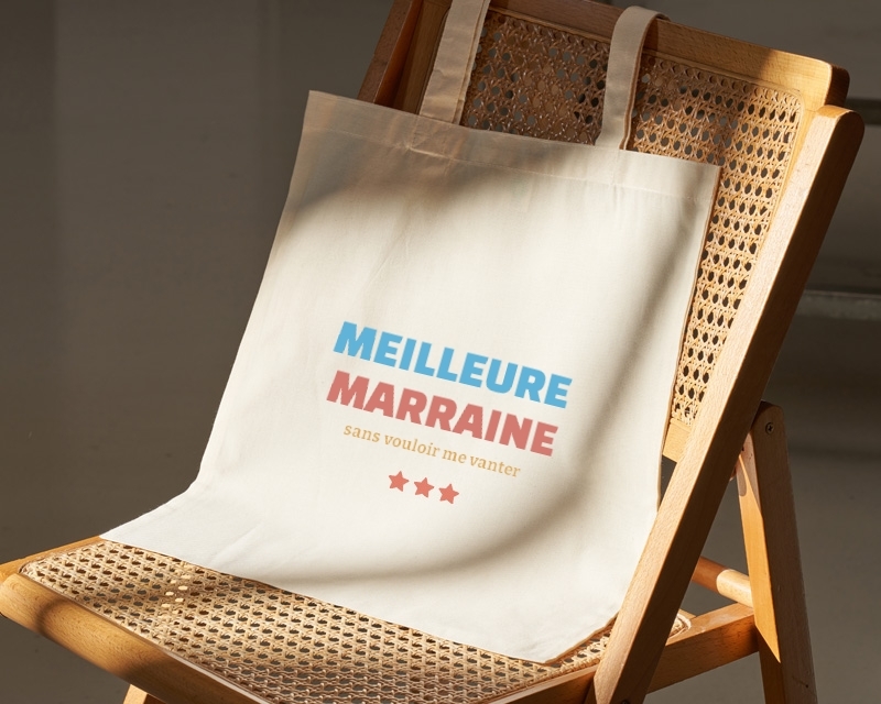 N'attendez plus et offrez à votre meilleure marraine un cadeau qui lui ressemble avec ce tote bag personnalisé ! Elle sera touchée par cette attention spéciale et utilisera ce sac avec fierté à chaque fois qu'elle sortira.