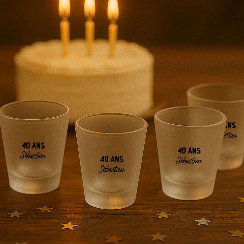 Ce petit verre en verre dépoli est à la fois raffiné et résistant. Sa surface mate donne un toucher agréable et un rendu doux à la lumière, parfait pour sublimer la gravure personnalisée. La gravure laser assure une finition nette et durable, pour que votre message accompagne longtemps les moments de convivialité.